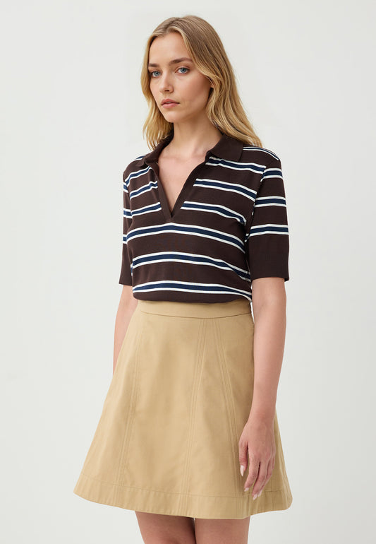 Short-Sleeve Crew Neck Stripe Detail Knit T-Shirt