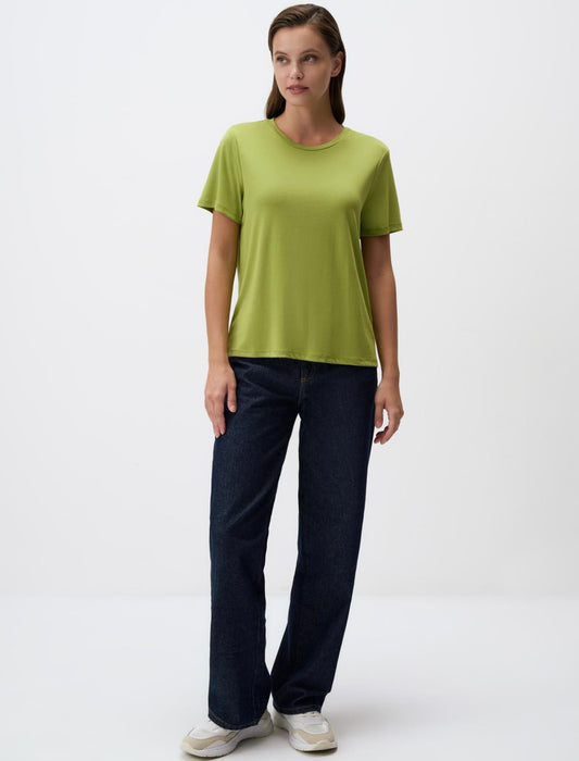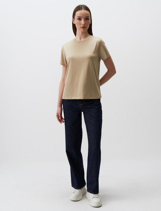 Straight Fit Crew Neck Short Sleeved Basic Jersey T-Shirt