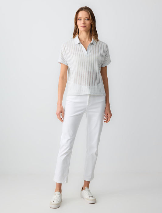 Knitted T-shirt with Knit Collar Short Sleeve Striped Pattern