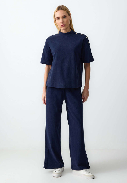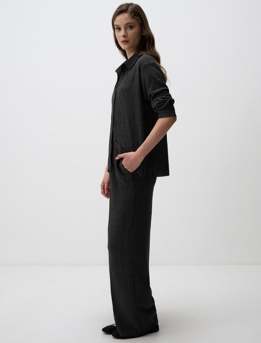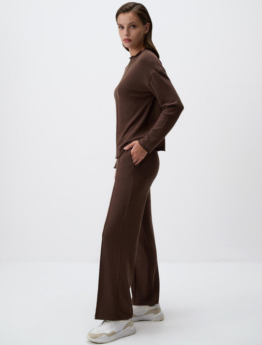High Waist Relaxed Fit Wide Leg Knitted Pants