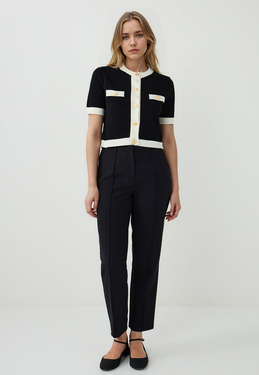 Patterned Polo Collar Short Sleeve Knitted Blouse
