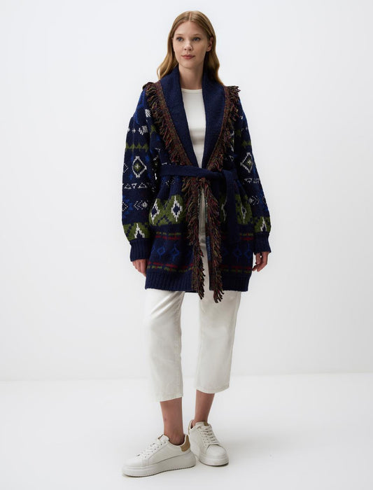 Loose Fit Open Neck Patterned Sweater Cardigan