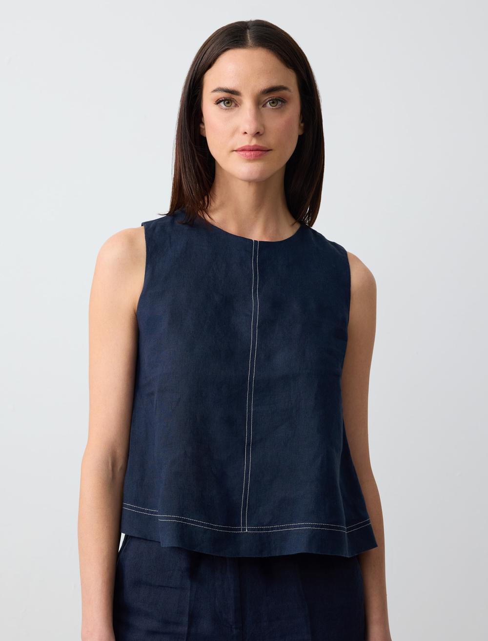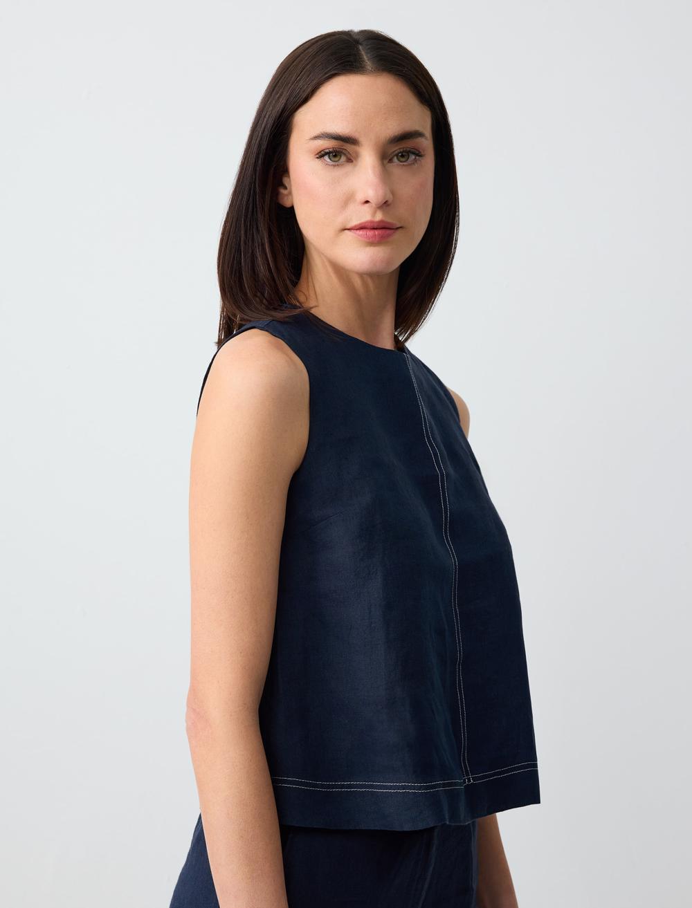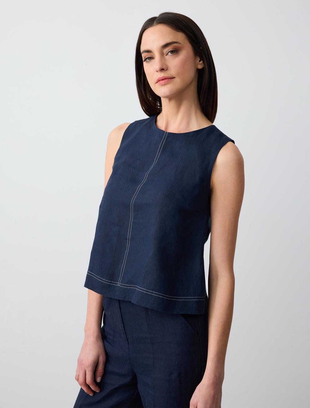 Loose fit Crew neck Sleeveless Normal Lenght Woven Dark Blue Blouse Fabric: %100 Linen Dry clean, Do not tumble dry, Machine and hand wash at 30°C, Wash and iron inside out, Iron in the low heat, No chlorine bleach Fit: Loose fit Crew neck Length: Normal Lenght Model Size: S Model Height: 177 Model Breast: 84 cm Model Waist: 63 cm Model Hips: 88 cm