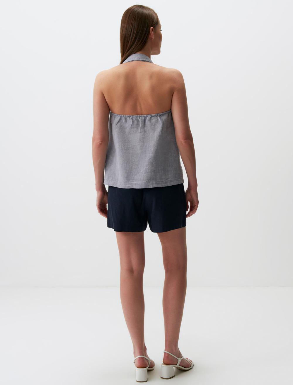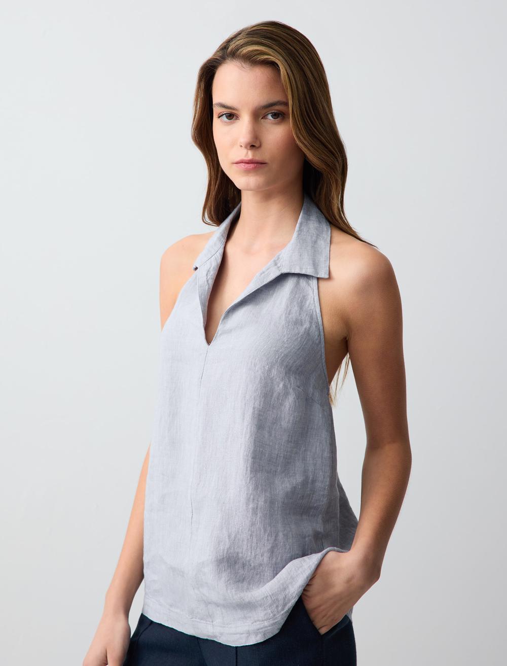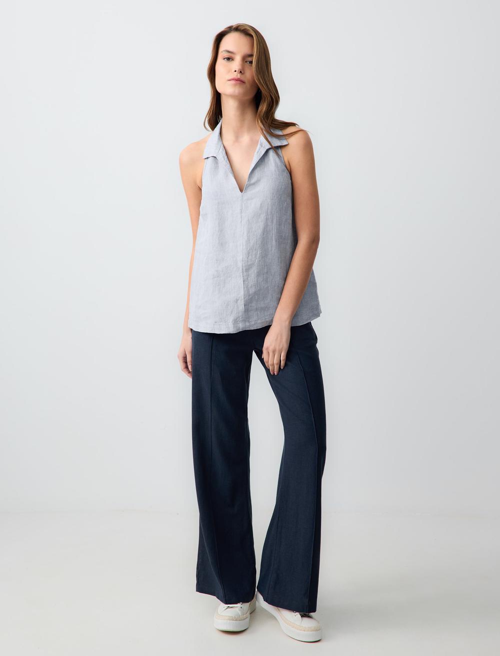 Slim Fit Shirt Collar Long Woven Blue Melange Blouse Fabric: %100 Linen Machine and hand wash at 30°C, No chlorine bleach, Dry clean, Do not tumble dry, Wash and iron inside out Fit: Slim Fit Shirt Collar Length: Long Model Size: S Model Height: 173 Model Breast: 83 cm Model Waist: 60 cm Model Hips: 89 cm