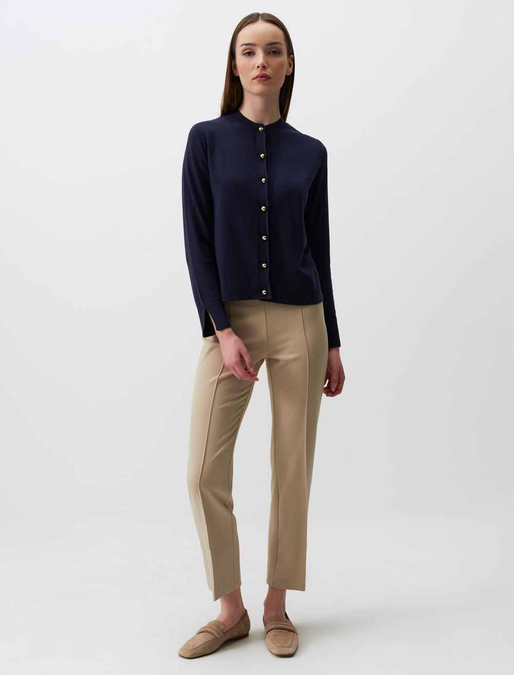Woman Textile Top Wear DARK BLUE Cardigan Slim Fit Crew neck Long Sleeve DARK BLUE Cardigan No chlorine bleach, Dry clean, Do not tumble dry, Machine and hand wash at 30°C, Wash and iron inside out %52 Viscose %27 Polyester %21 Polyamide Model Height 177 cmModel Breast 84 cm Model Waist 63 cm Model Hips 88 cm Model Size Model Size S