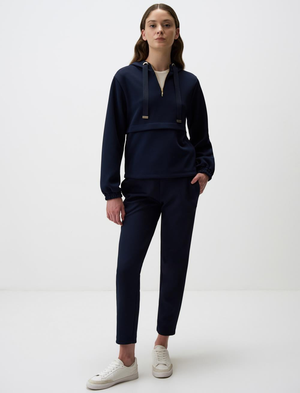 Woman Textile Bottom Wear DARK BLUE Trousers Regular Fit High Waist DARK BLUE Trousers No chlorine bleach, Dry clean, Do not tumble dry, Machine and hand wash at 30°C, Wash and iron inside out %69 Polyester %27 Polyamid %4 Elastane Model Height 176 cmModel Breast 86 cm Model Waist 62 cm Model Hips 90 cm Model Size Model Size S