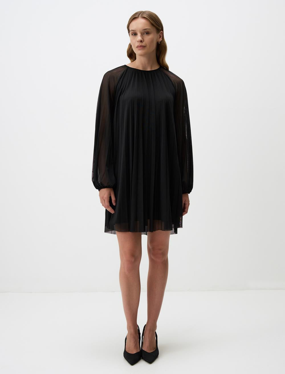 Woman Textile Dress BLACK Dress Loose fit Crew neck Long Sleeve BLACK Dress No chlorine bleach, Dry clean, Do not tumble dry, Machine and hand wash at 30°C, Wash and iron inside out %94 Polyester %6 Elastane Model Height 176 cmModel Breast 86 cm Model Waist 62 cm Model Hips 90 cm Model Size Model Size S