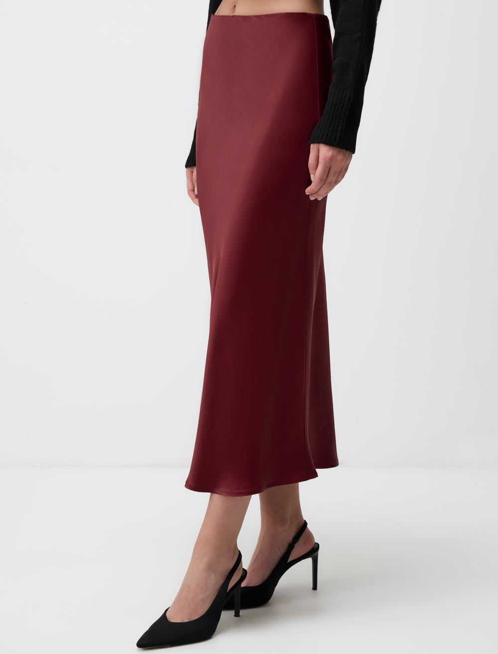 Slim Fit Maxi Lenght Woven Burgundy Skirt Fabric: %100 Viscose Dry clean, Do not tumble dry, Machine and hand wash at 30°C, Wash and iron inside out, Iron in the low heat, No chlorine bleach Fit: Slim Fit Length: Maxi Lenght S Model Size: 176 86 cm 62 cm 90 cm