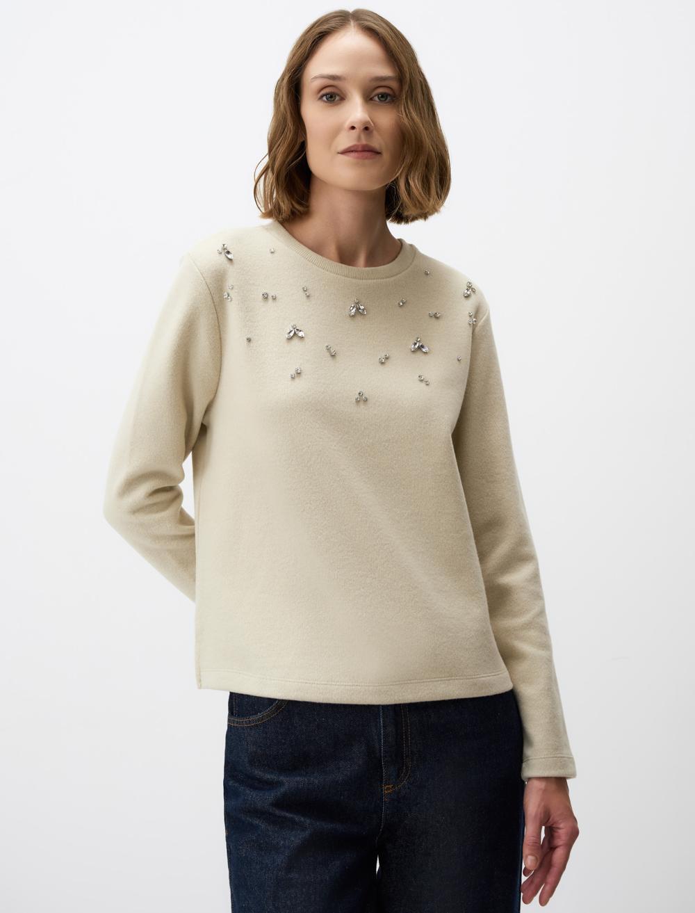 Crew-Neck Knitted Pullover with Shiny Stone Detail