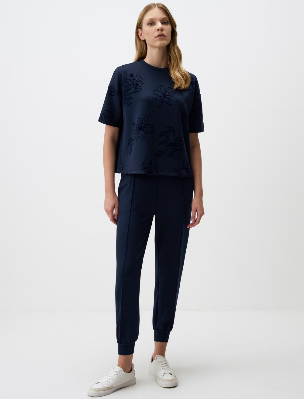 Loose fit Crew neck Short Sleeve Short Knitted Dark Blue Sweatshirt Fabric: %49 Modal %42 Polyester %9 Elasthane Fit: Loose fit Crew neck Length: Short S Model Size: 176 86 cm 62 cm 90 cm