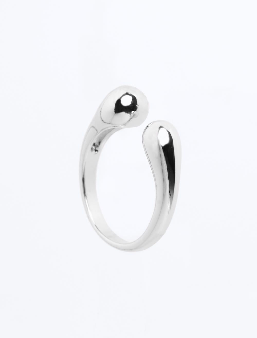 Adjustable Woman Accessory Silver-Coloured Ring, Oval-shaped Ring with Shiny Stones,