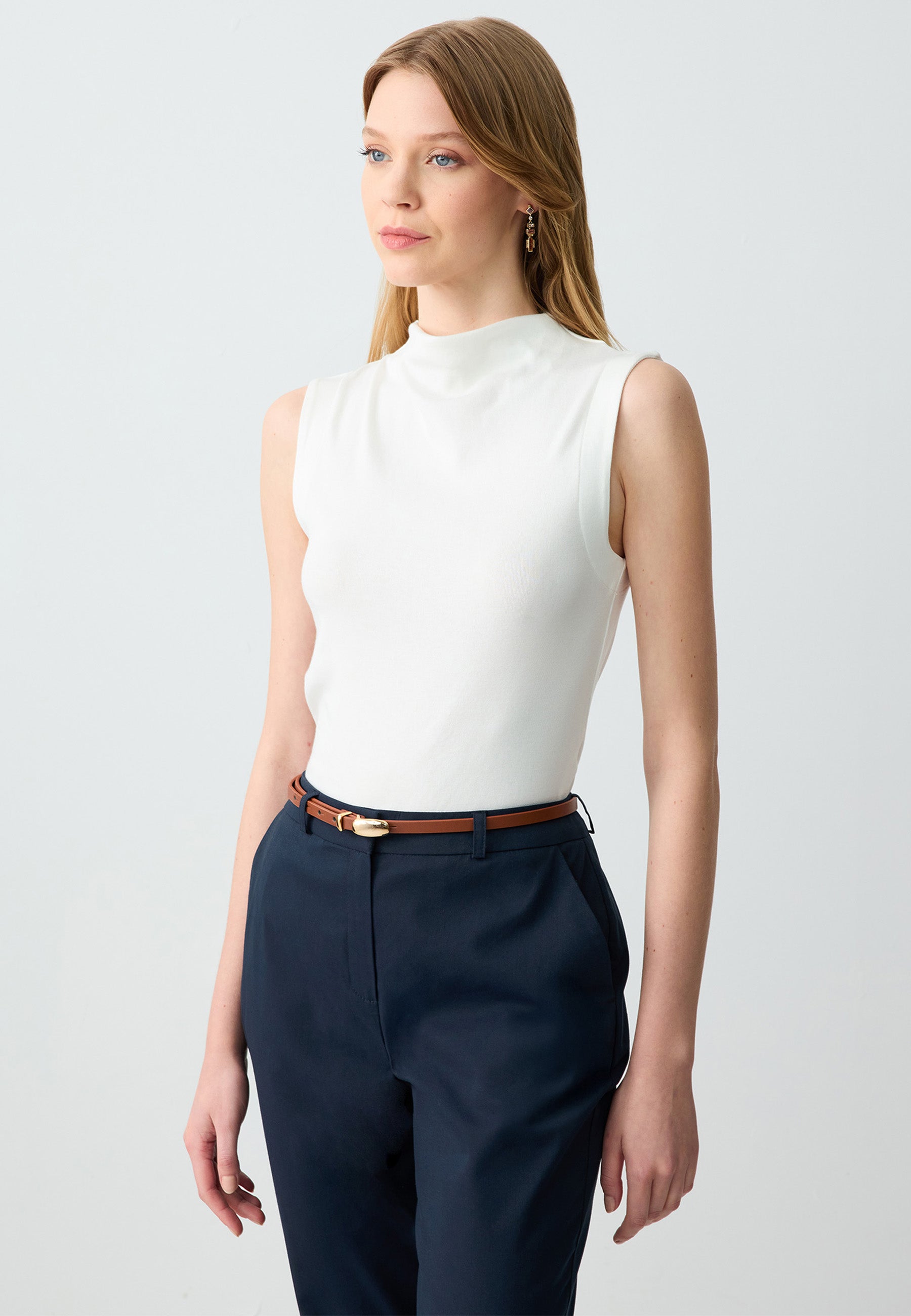Woman Textile Top Wear White Singlet, %48 Cotton %48 Modal %4 Elastane, Regular Fit