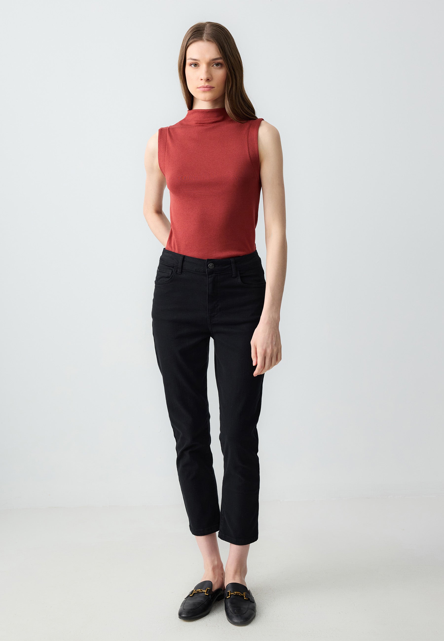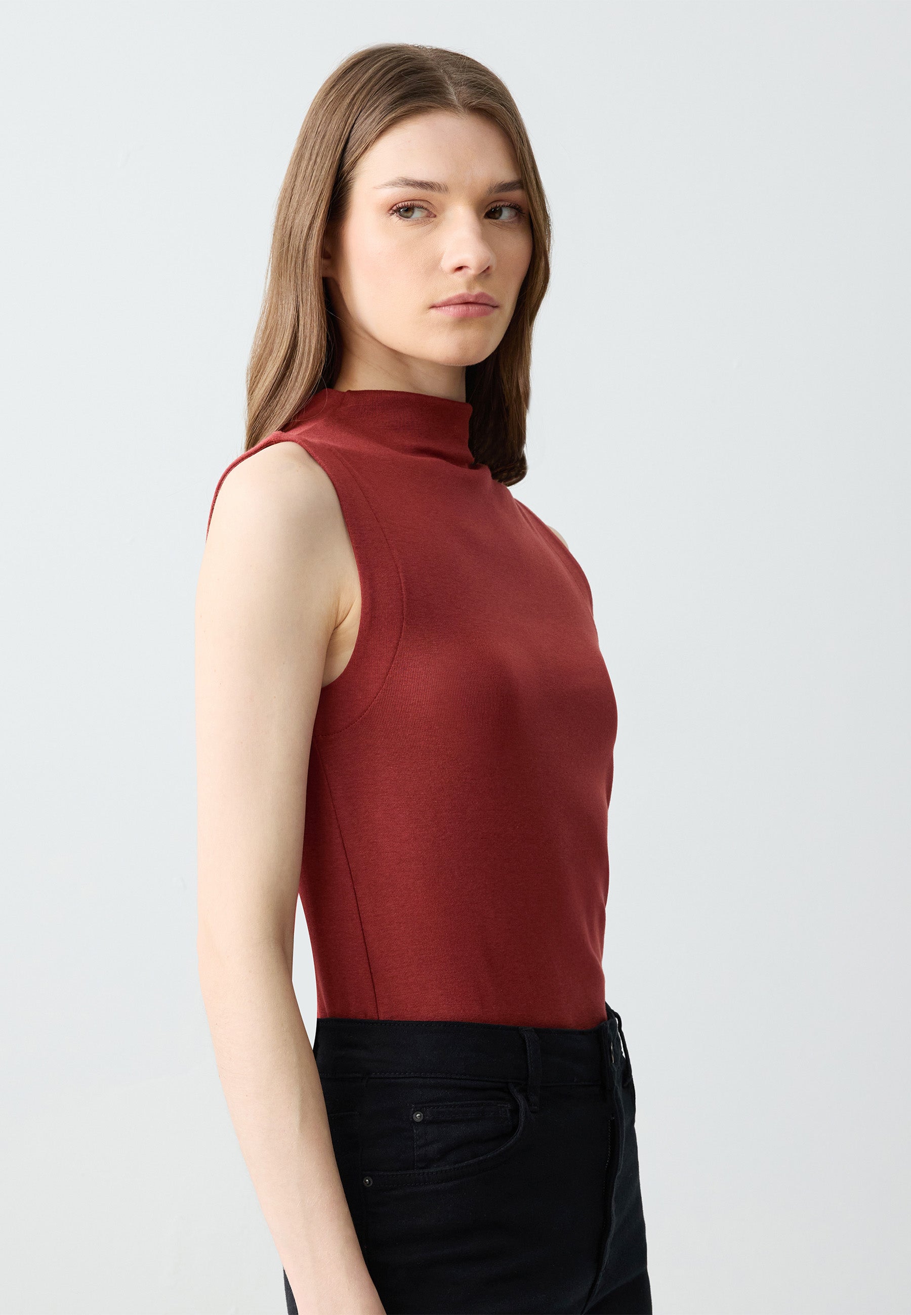 Woman Textile Top Wear Brown Singlet, %48 Cotton %48 Modal %4 Elastane, Regular Fit