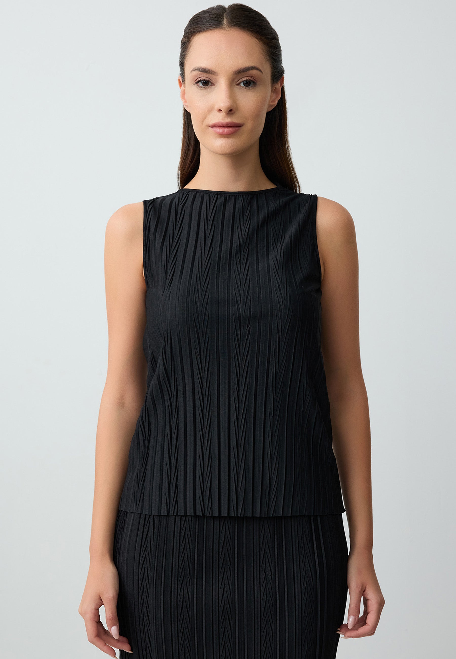 Crew Neck Pleated Sleeveless Knitted Blouse
