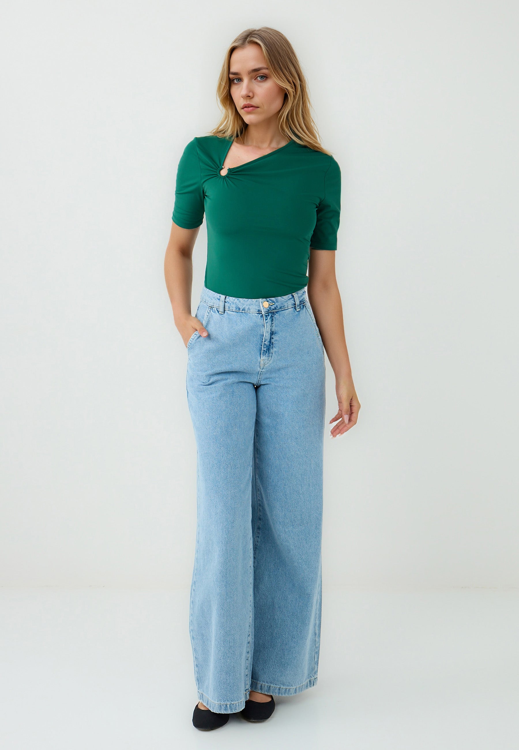 Slim Fit Knitted Green Blouse