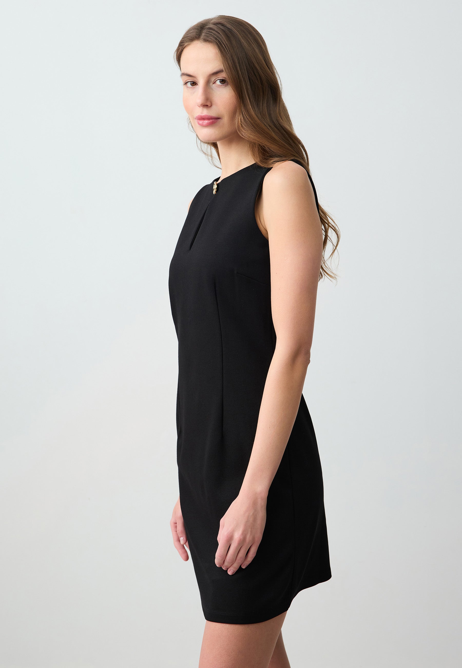 Woman Textile Black Dress, Slim Fit Crew neck Sleeveless Black Knitted Dress, %70 Viscon %26 Polyamide %4 Elastane