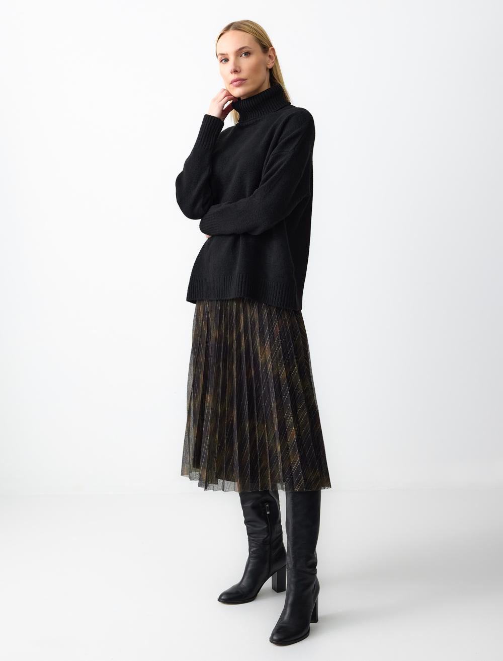 Relaxed Fit Regular Waist Tulle Detailed Knitted Midi Skirt