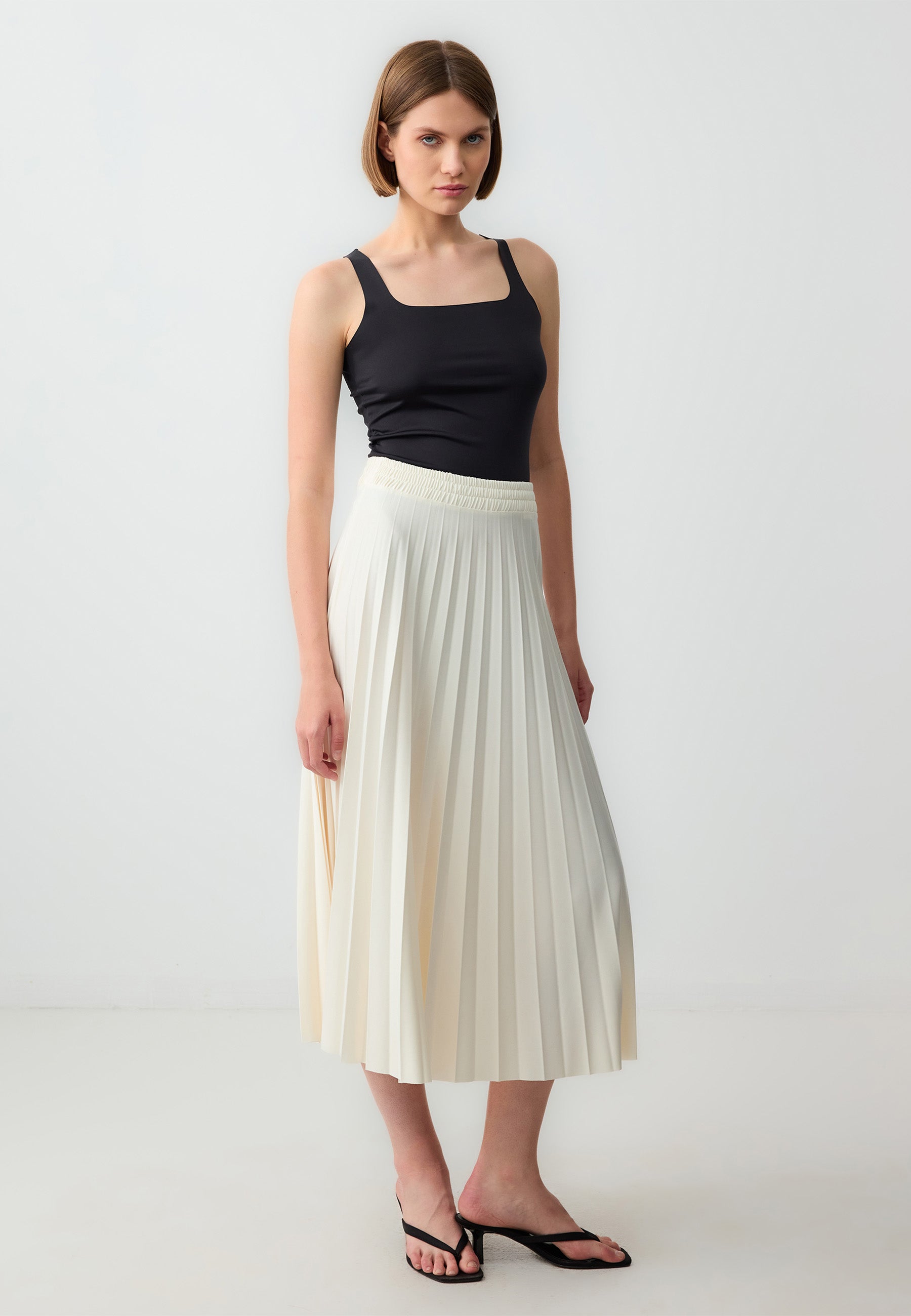 Regular Waist Elastic Pleated Knitted Midi Skirt