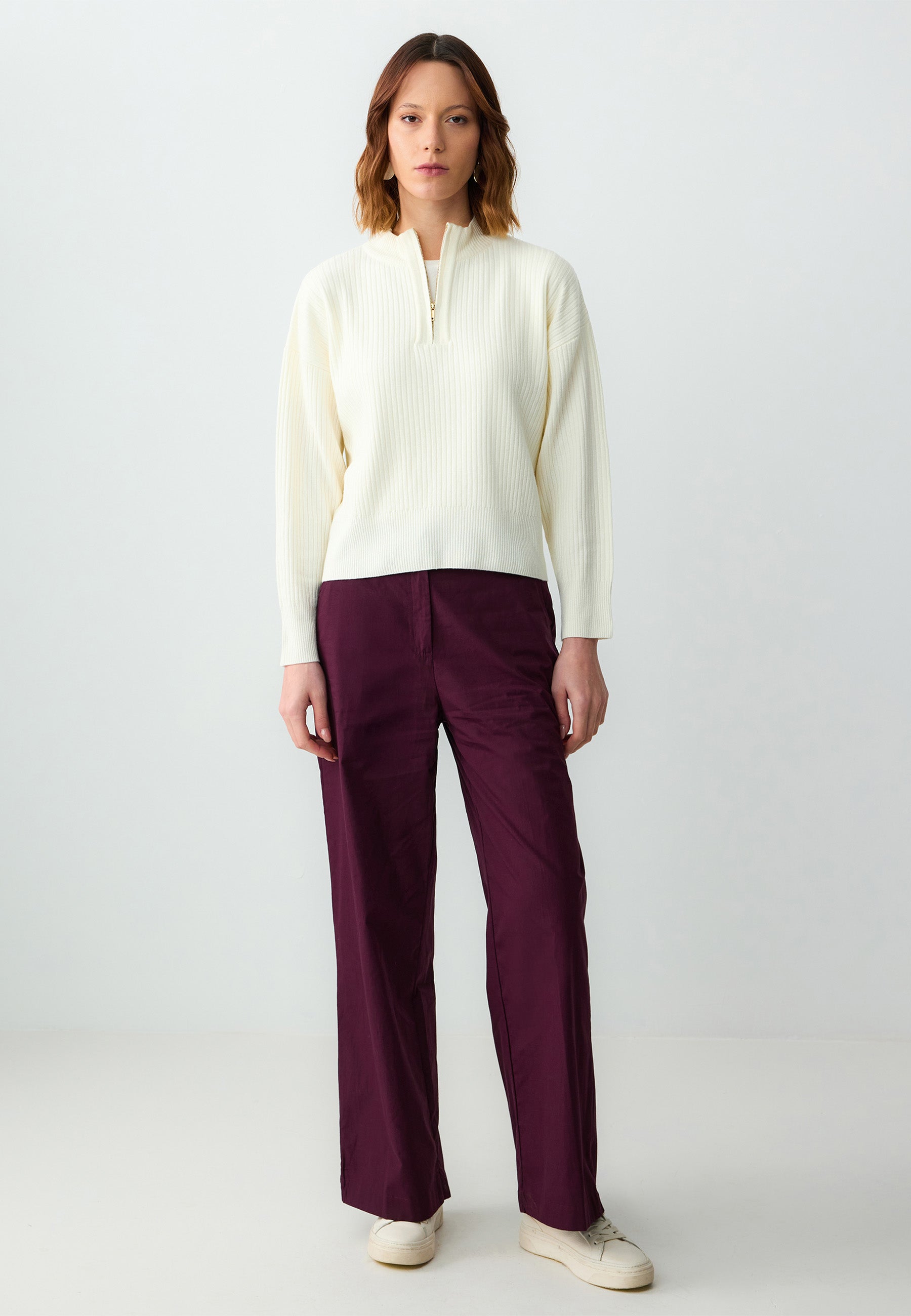 Regular Fit Polo neck Long Sleeve Tricot Normal Lenght Ecru Pullover