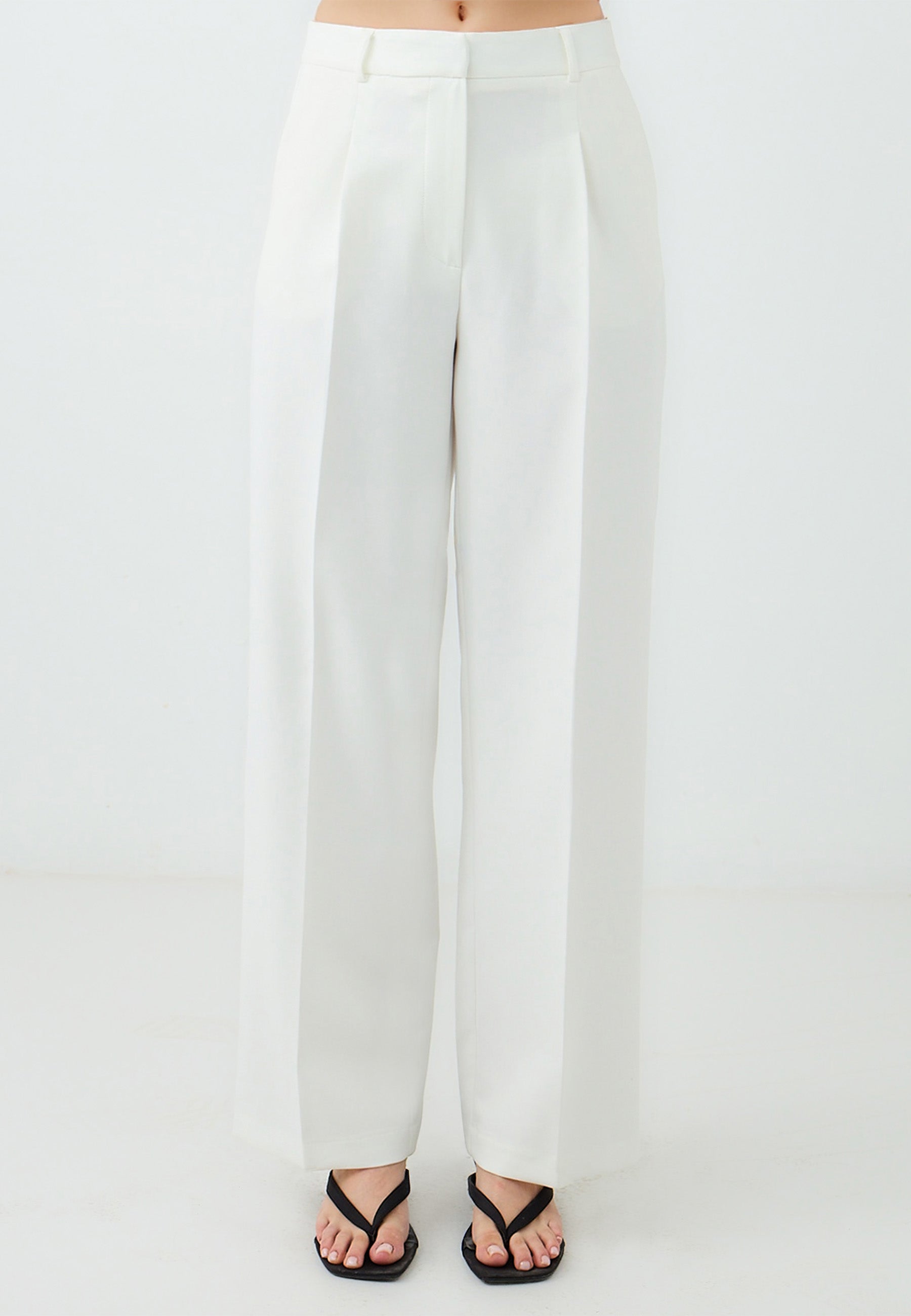 Woman Textile Bottom Wear White Trousers, Regular Fit Regular Waist Regular Length Regular Leg White Woven Trousers, %85 Polyester %15 Elastane