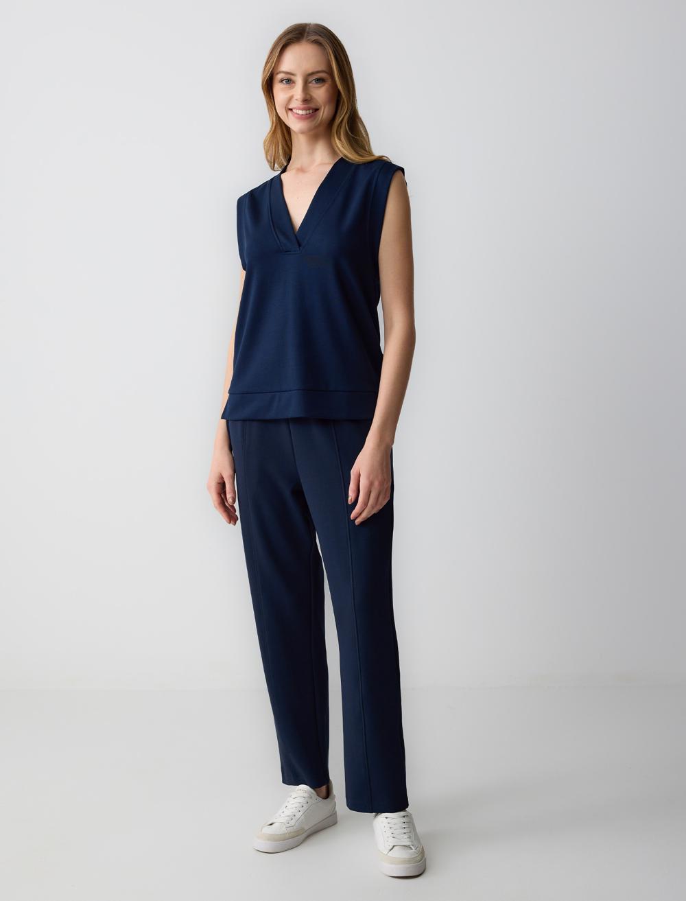 Normal fit V-neck Sleeveless Normal Lenght Knitted Dark Blue Sweatshirt Fabric: %49 Modal %42 Polyester %9 Elasthane Fit: Regular Fit V-neck Length: Normal Lenght S Model Size: 176 86 cm 62 cm 90 cm