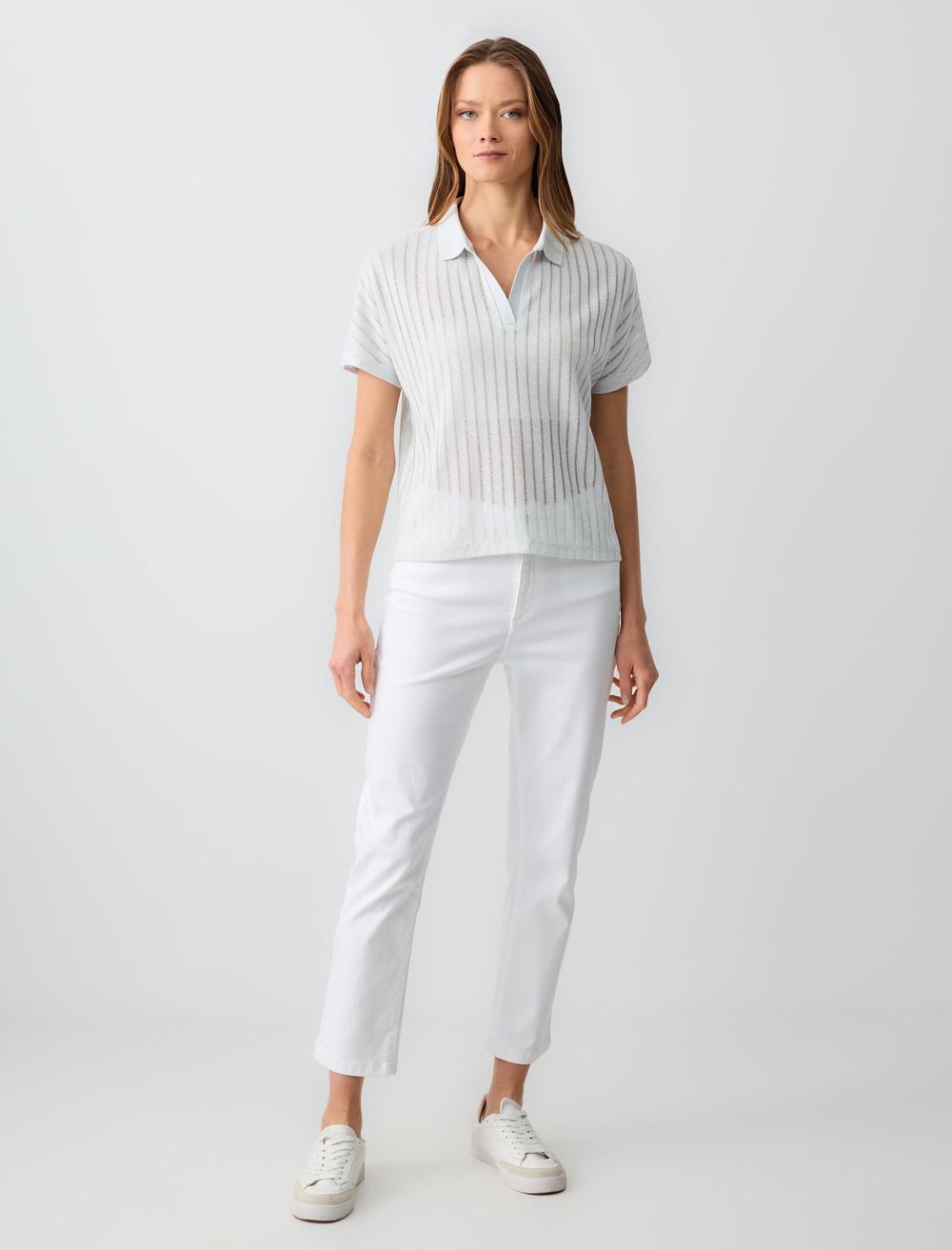Loose fit Polo shirt Short Sleeve Normal Length Knitted Ecru T-shirt Fabric: %61 Polyester %31 Viscose %8 Lurex Fit: Loose fit Polo shirt Length: Normal Length S Model Size: 176 86 cm 62 cm 90 cm