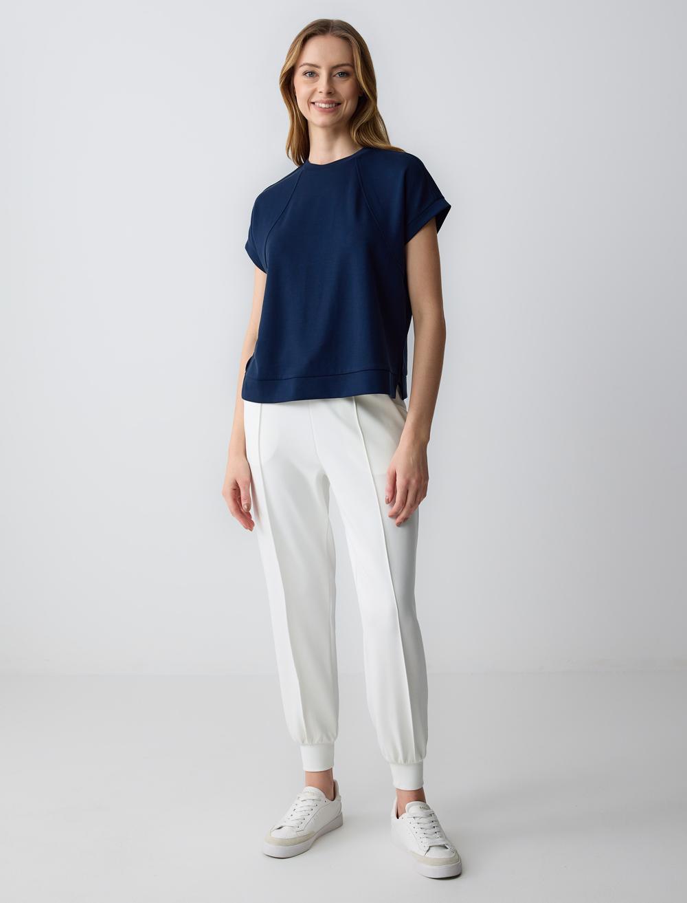 Straight Cut Short Sleeve Crew Neck Knitted Sweatshirt