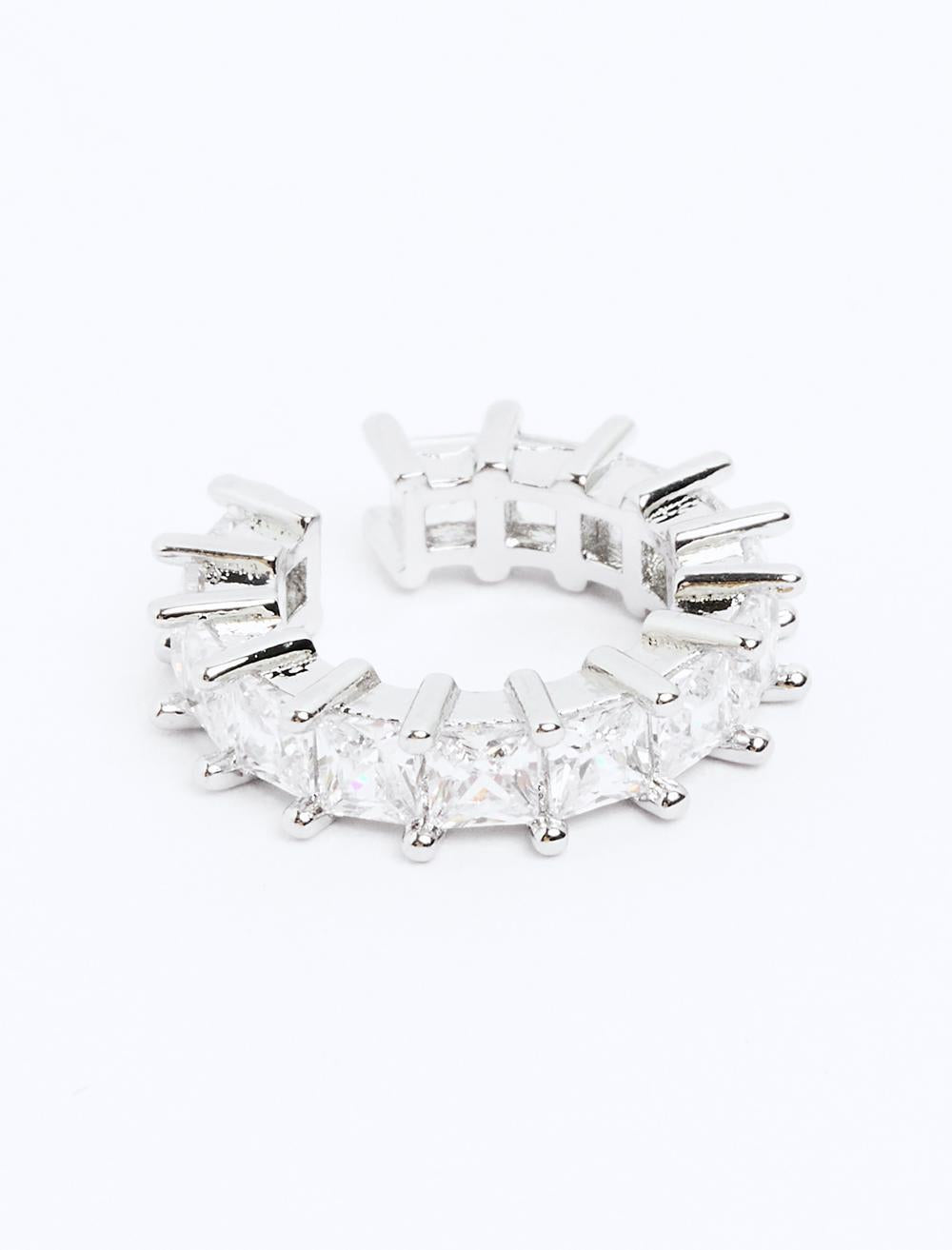 Woman Accessory Silver-Coloured Earring, Sequenced Shiny Stone-Detailed Cartilage Earrings,