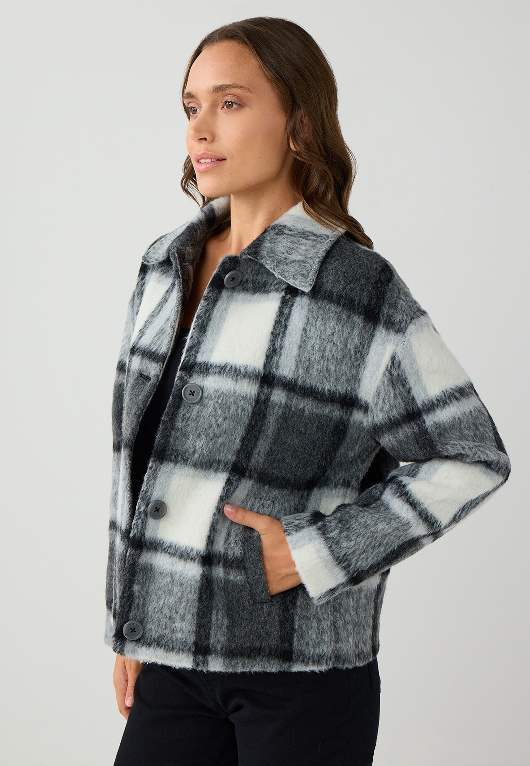 Regular Fit Long Sleeve Regular Length Black Woven Coat%70 Polyester %30 Wool