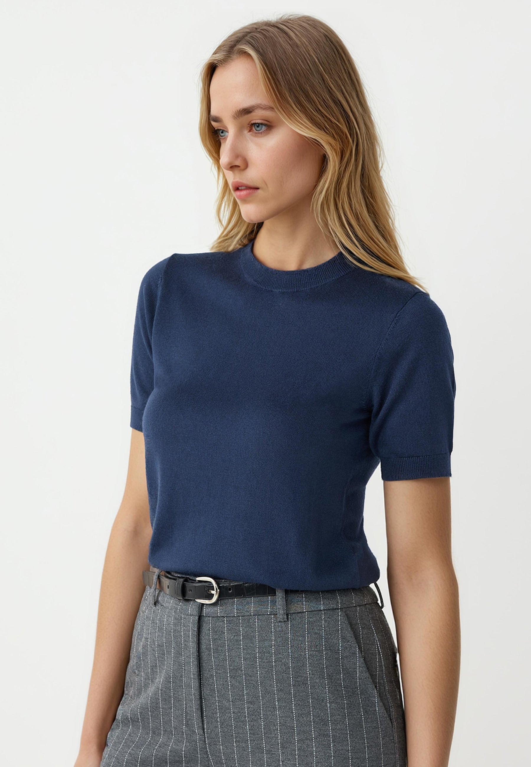 Round Neck Short-Sleeved Wool-Blend Knit Sweater