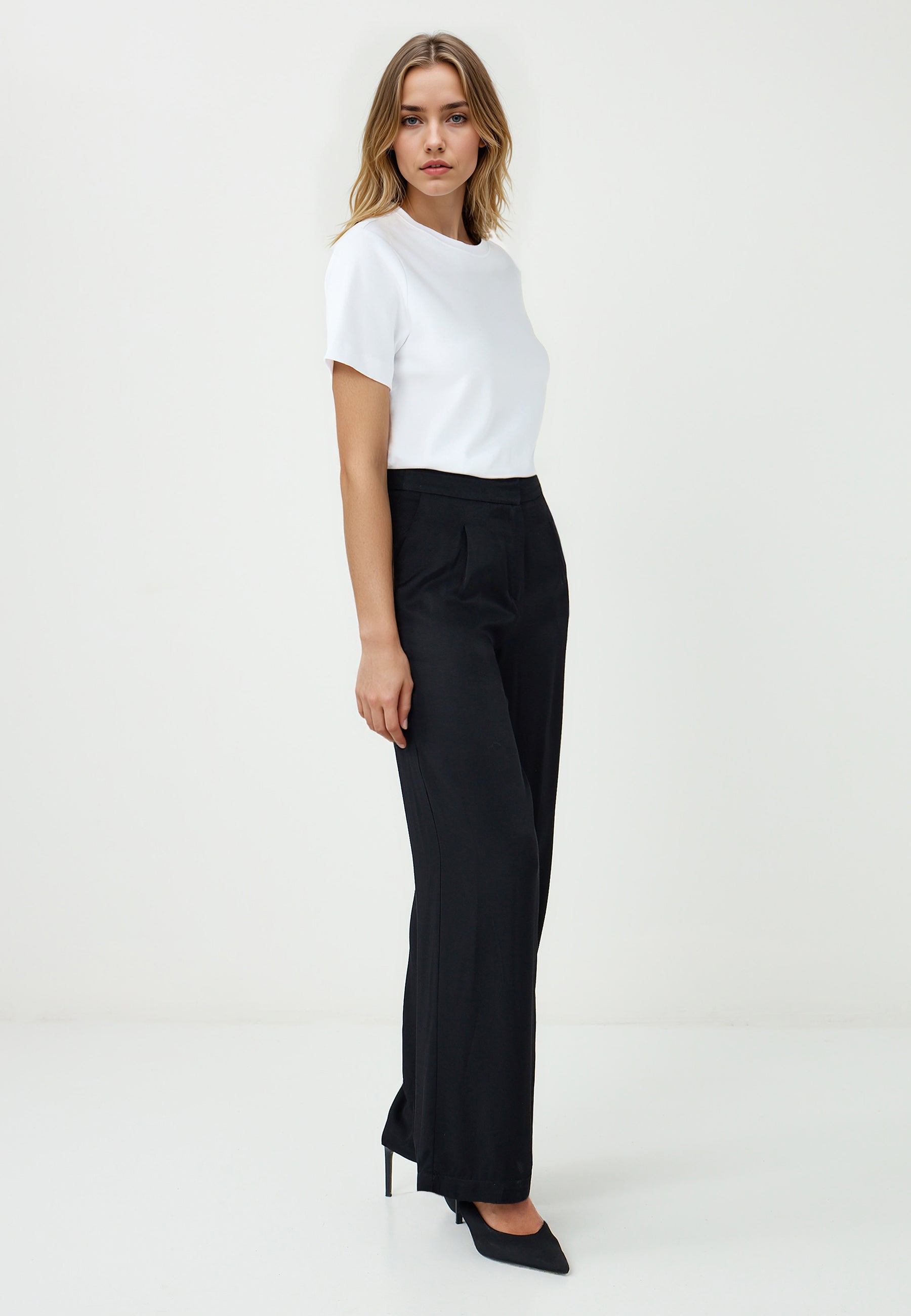 Regular Fit Regular Waist Normal Length Wide Leg Black Woven Trousers