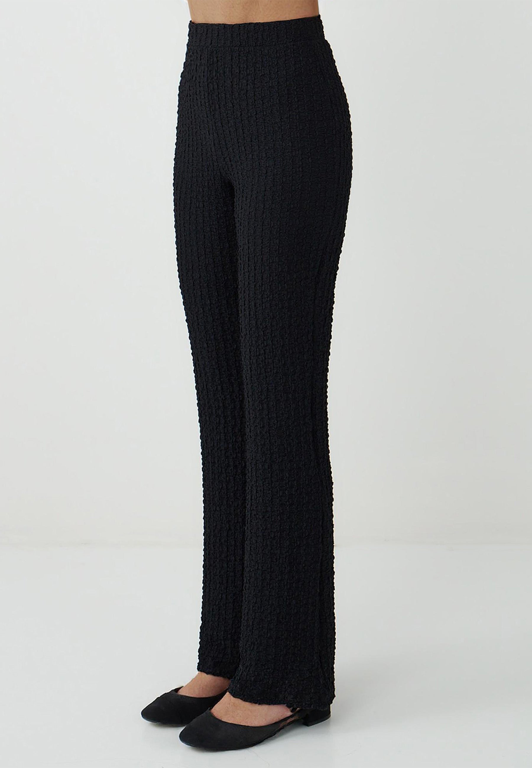 Slim Fit Regular Waist Regular Length Wide Leg Black Woven Trousers